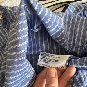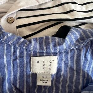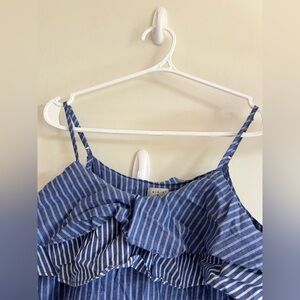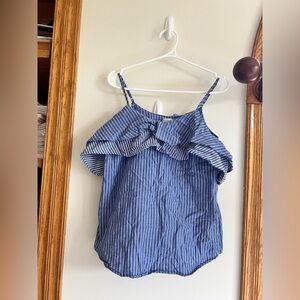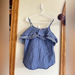 Stylish blue striped top with ruffle detail. Perfect for casual outings.