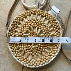 A New Day Boho Round Crossbody Handle Bag Beaded Straw Neutral Tan Purse