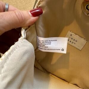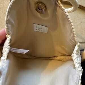 A New Day Boho Duel Crossbody Handle Bag Round Beaded Straw Neutral Tan Purse