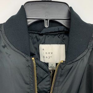 A New Day Bomber Jacket Black Full Zip Water Resistant NWT