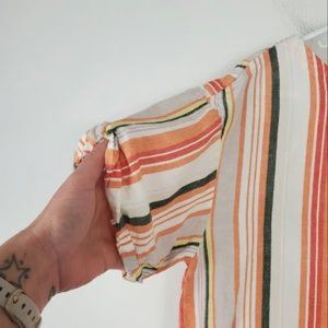 A New Day Boxy Linen Blend Top Womens Size L Neutral Stripe Capsule Lightweight