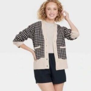 A New Day Brand Taupe/Black Houndstooth Cozy Knit Everyday Cardigan Women's XXL