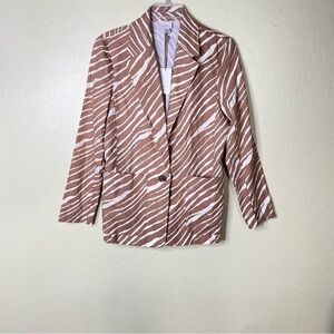 A New Day Brown Tan Cream Zebra Animal Print Linen Blazer Nwt Size Small S