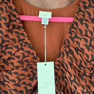 Elevate your wardrobe with this stunning A New Day Women's Bodycon Dress. Featuring a brown geometric print, long sleeves, and a v-neckline, this dress is perfect for any occasion.