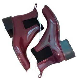 A New Day Burgundy Ankle Camille Heeled Rain Boots NWOT