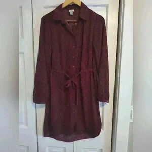 A New Day Burgundy Leopard Shirt dress | button up | Long Sleeve | Medium