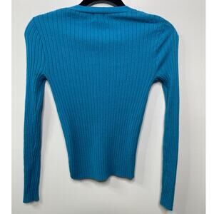 A New Day Button Front Ribbed Cardigan Sweater Long Sleeve V-Neck Blue Womens XS