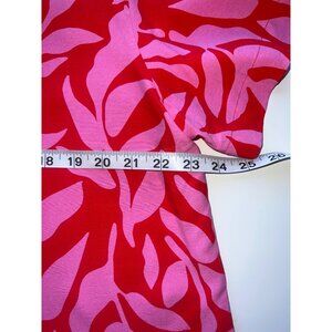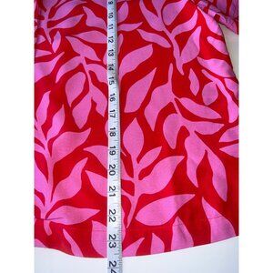 A New Day Button Up Womens M Red Pink Leaf Print 100% Rayon Short Sleeve