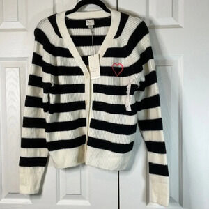 A New Day Button-Down Cardigan Black/Cream Striped Size XS