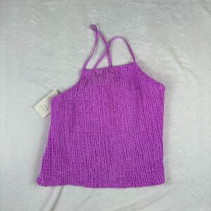 A New Day Camisole Top Womens XL Purple Satin Smocked Adjustable Strap Cropped