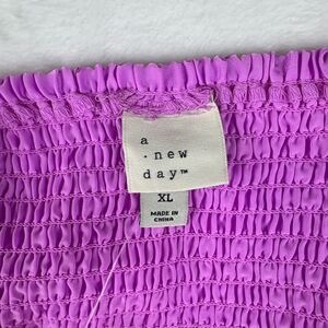 Crafted for comfort and style, the A New Day Camisole Top is a must-have addition to your wardrobe. Available in a vibrant purple shade, this top is a perfect choice for those looking to add a splash of color to their casual ensemble. Designed with a square neckline and spaghetti straps that are adjustable for a personalized fit, this camisole caters to both practicality and fashion. The lightweight and breathable polyester material ensures that you stay cool and comfortable, especially during the warmer spring and summer months. This sleeveless garment, in a size XL, has a smocked design for a flattering fit and is easily cared for with machine washability. Whether you're enjoying outdoor activities or just lounging around, this camisole is an effortless piece for any casual occasion.