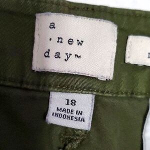 A New Day Camo Green Casual Summer High Waist Chino Shorts Size 18