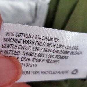 Camo green chino shorts. Hook and zipper closure. Slit pocket on the sides and taylored pockets on the back. 98% cotton and 2% spandex.