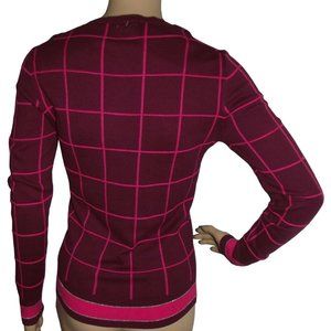 Color: Burgundy, Pink and Silver metallic around bottom of sweater/sleeve cuffs
