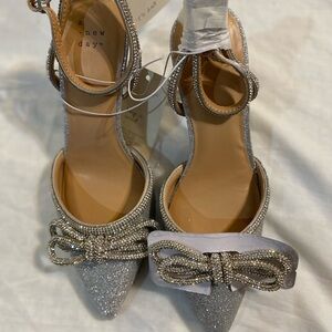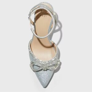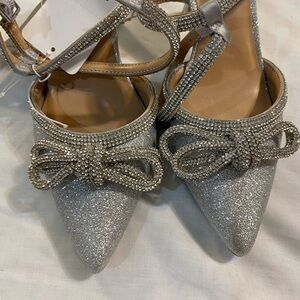 Wow! The body of these heels is a sparkling silver glitter; the bow, straps, and trim are silver rhinestones.