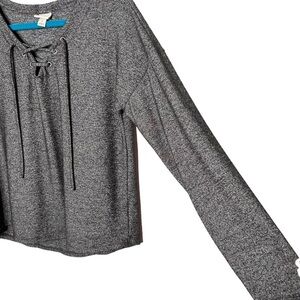 A New Day Charcoal Heather Gray Lace Up Neckline Blouse