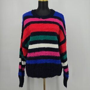 A New Day Colorful Striped Women's Sweater Blue Pink Green Crewneck Size XL