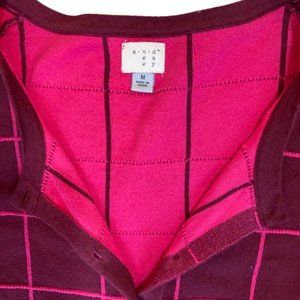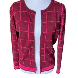 A New Day Cotton Cardigan Sweater in Wine and Pink, Sparkle Trim, sz Sm/Medium