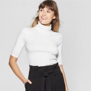 💜A New Day Cream Turtleneck Elbow Sleeve Top Small