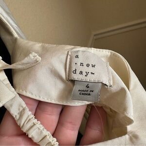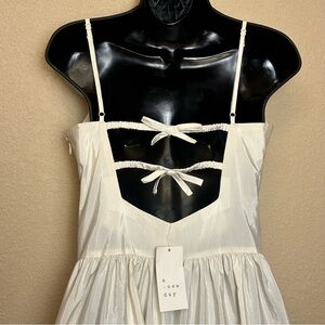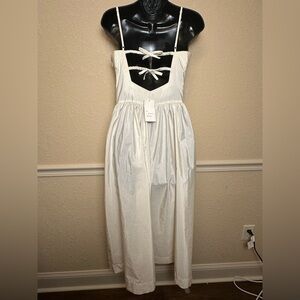 A New Day Creamy White Spaghetti Strap Adjustable Mid Dress Pockets & Bows NWT 4