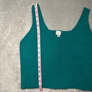 A New Day Crop Tank Sweater Women Size M Green Fuzzy V-Neck Vest Academia Preppy