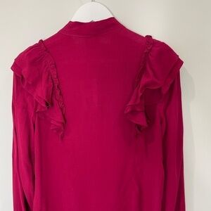 NWT - A New Day Dark Pink Button Up Long Sleeve Ruffle Blouse