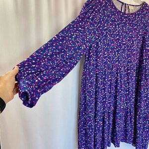 A New Day Dress Purple Confetti Print Mini Long Sleeve Women’s XXL Loose Fit