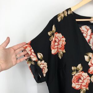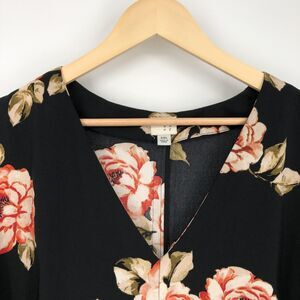 A New Day Dress Womens 2XL Black Floral Short Sleeve V Neck Midi Pullover