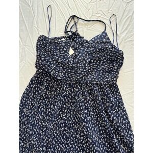 A New Day Dress Womens Medium Navy Floral Pleated Maxi Spaghetti Strap Tie Back