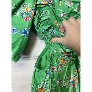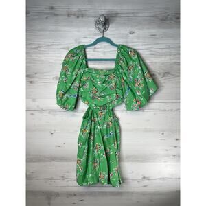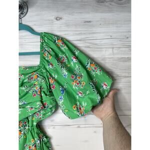 A New Day Dress Womens Small Green Floral Puff Sleeve Square Neck Smocked Lined