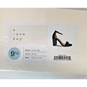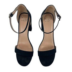A New Day EMA High Block Heels 9.5 Ankle Strap Black Faux-Suede