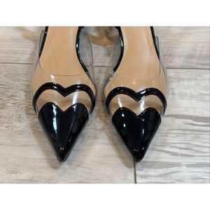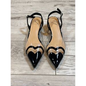 A New Day Eleanor Heart Slingback Kitten Black Heels Size 8