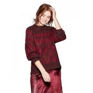 A New Day Fairisle Cozy Soft Sweater Fuzzy Burgundy Red XSmall XS Womens Crew