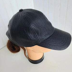 A New Day Fitted Faux Leather Hat Black One Size Te Textured 6 Panel Blank