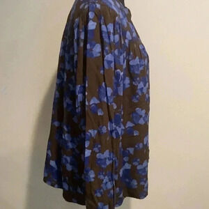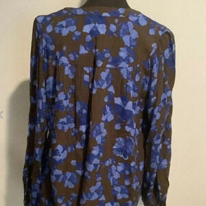 A New Day Women’s S Blue Brown Floral Long Sleeve Button Front Top Sz Small NWOT
