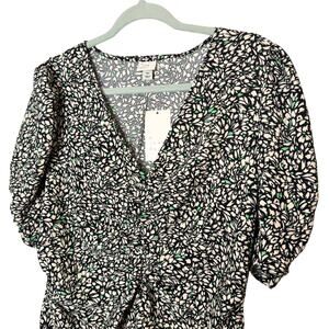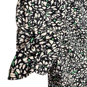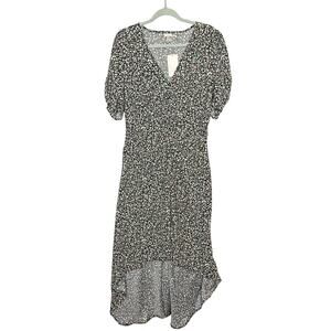 A New Day Floral Short Puff Sleeve Crepe Midi Dress Size XL Black Off-White New