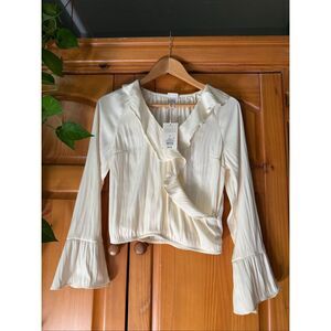 A New Day Flounce Long Sleeve V-Neck Ruffle Wrap Blouse Cream Off White Size Small Nee With The Tag