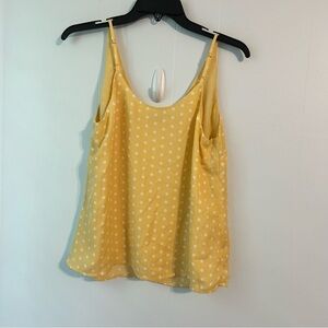 A New Day Gold size small Asymmetrical Sleeveless Camisole yellow/white polkadot