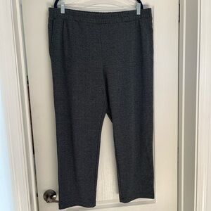 Stylish gray/black herringbone ankle pants. Elastic waist provides all-day comfort in these work-appropriate knit ankle length straight trousers. Pockets, and a classic look.