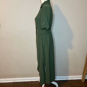 This versatile dress features a notched collar and cuffed short sleeves, perfect for casual or work settings. Its buttoned design and side slits add a touch of elegance to the comfortable, flowing silhouette.