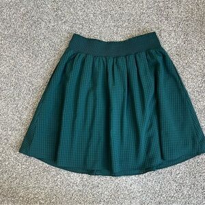 This green gingham mini skirt is perfect for fall and winter. It has pleating and a smocked back waistline for a comfortable fit. It is fully lined.