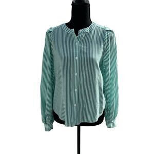 A New Day Green and White Striped Balloon Sleeve Button-up Blouse XS