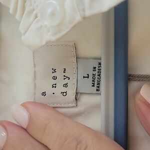 A New Day High Neck Ruffle Button Up Long Sleeve Top, Cream, Size Large