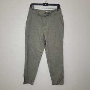 A New Day High Waisted Utility Sage Olive Green Tapered Leg Pants Trousers 8 Tan