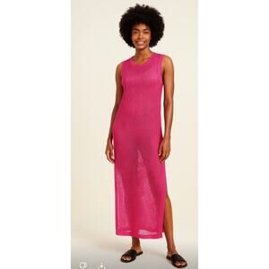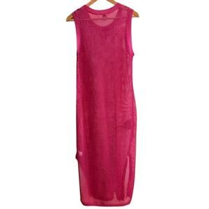 A New Day Hot Pink Metallic Mesh Knit Swim Cover Up Dress Sleeveless Maxi Size L