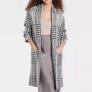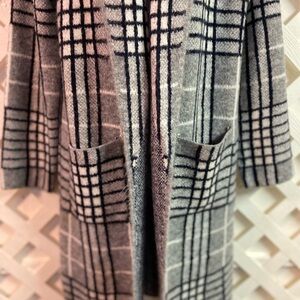 A New Day Jacquard Plaid Long Sleeve Sweater Coatigan Patch Pockets Gray XS/S