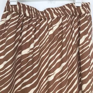 A New Day Khaki Cream Zebra Stripe Linen Blend Midi Wrap Skirt NEW