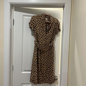 A New Day Knee-Length Leopard Dress with Belt, EUC