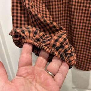 A New Day Ladies Size Large Orange Black Checked Shirt With Long Sleeves