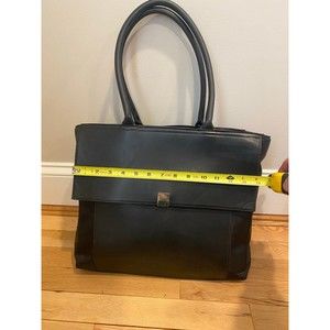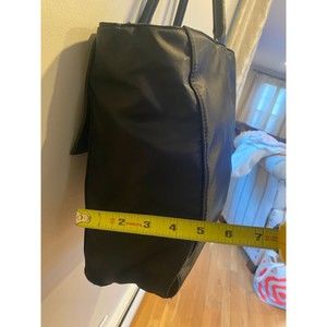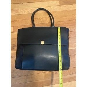 Gently used, inside lining has no rips, tears or stains. Gold button on front has some scratches.